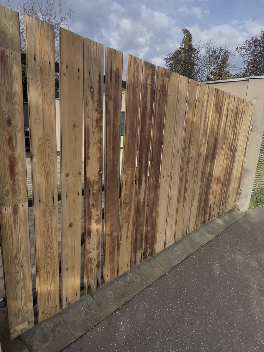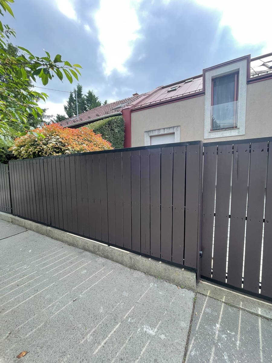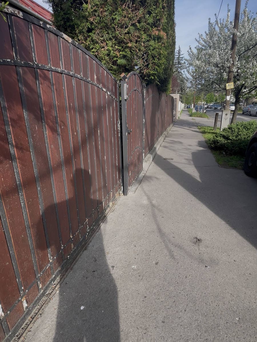 Fischer István utca – Kerítés fa elemek és zártszervény csiszolása, alapozása, festése 3 rétegben