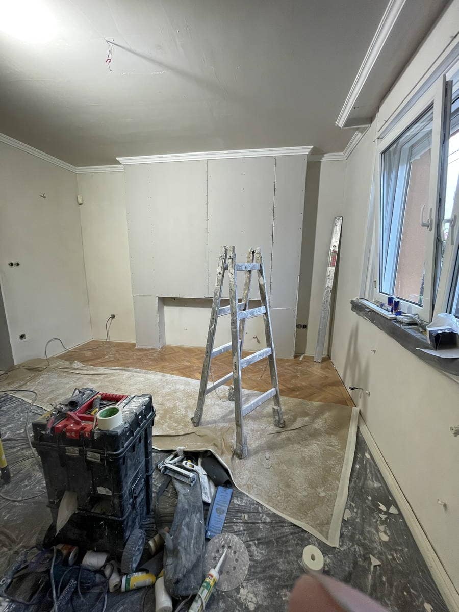 Gyömrő – Gyerekszoba ablak elkartonozása, teljes falfelület kaparása, glettelése, festése